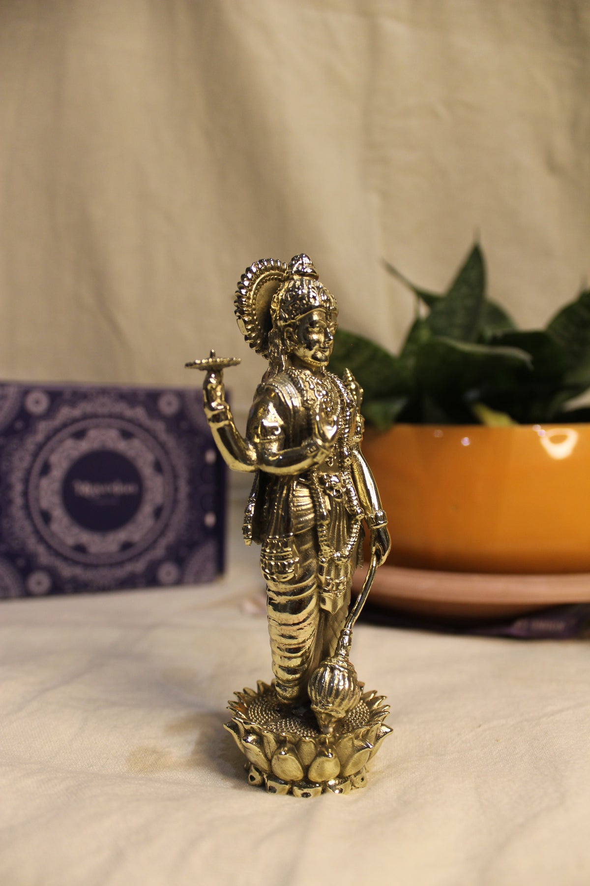 Celebrate the divine presence of Lord Vishnu in your home with this exquisite 5-inch standing murti, masterfully crafted in pure brass. Symbolizing protection, harmony, and prosperity, this idol features Lord Vishnu beautifully adorned, standing with Sheshanaga or on a lotus pedestal. With intricate detailing, traditional attire, and a polished golden finish, this compact idol is perfect for pooja rooms, temple altars, or as an auspicious gift for loved ones.