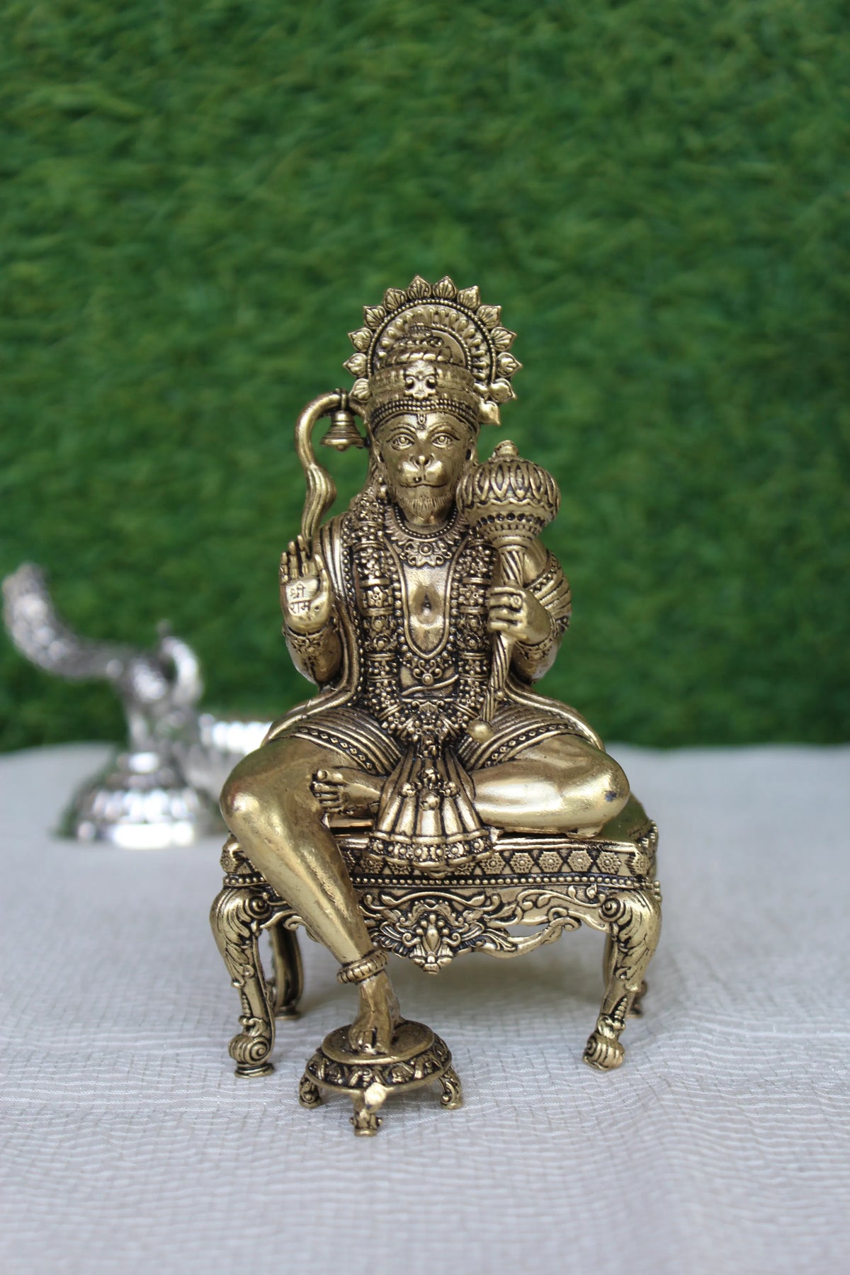 Brass Hanuman Ji Sitting On Throne | Majestic Idol Of Lord Hanuman For Home Temple & Gifting (5.25 inch)