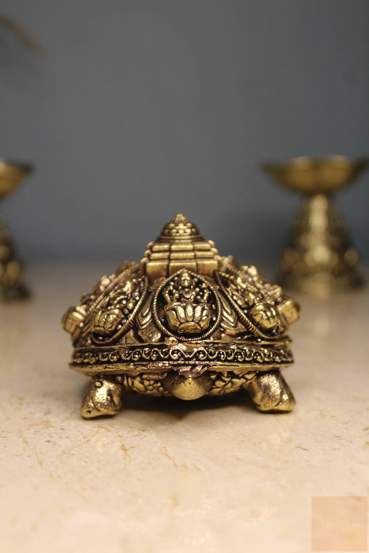 Attract wealth, prosperity, and positive energy with this powerful Ashta Lakshmi Brass Tortoise featuring sacred Shree Yantra engraving. This unique Vastu and Feng Shui remedy combines the auspicious symbolism of the tortoise (turtle) with the divine blessings of Ashta Lakshmi (eight forms of Goddess Lakshmi) and the mystical geometry of Shree Yantra, creating the ultimate prosperity magnet for your space.