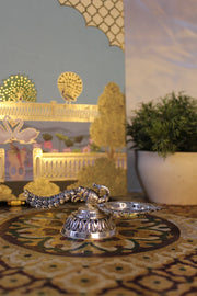 999 Silver Polish Brass Peacock Tail Diya | Side-Bowl Decorative Oil Lamp