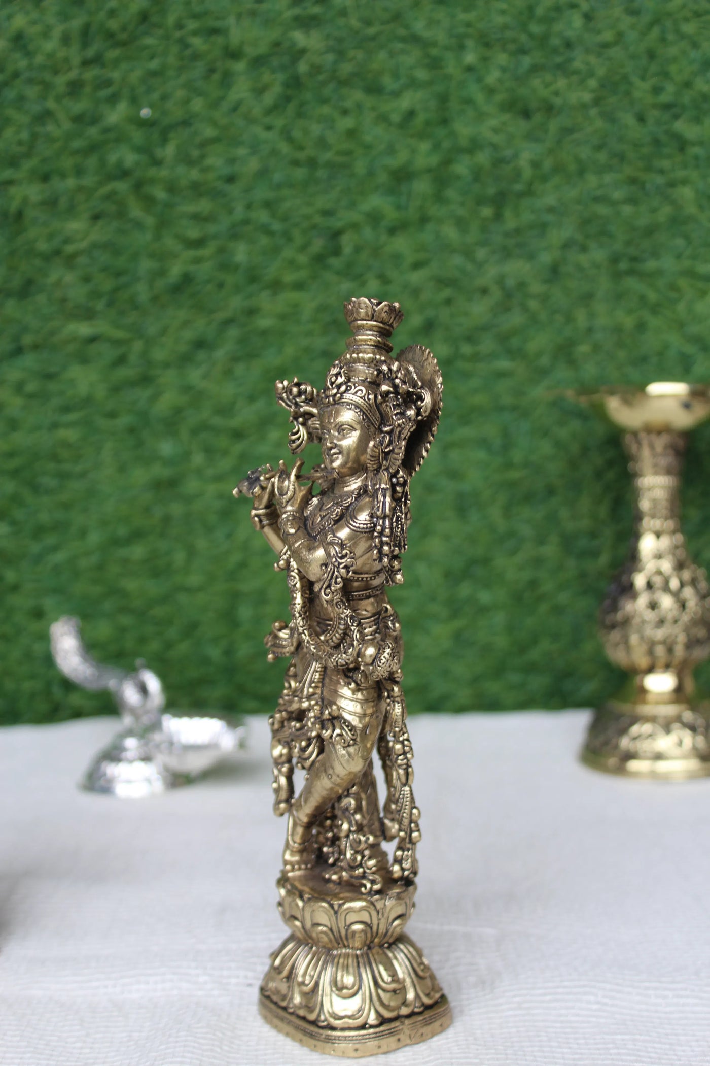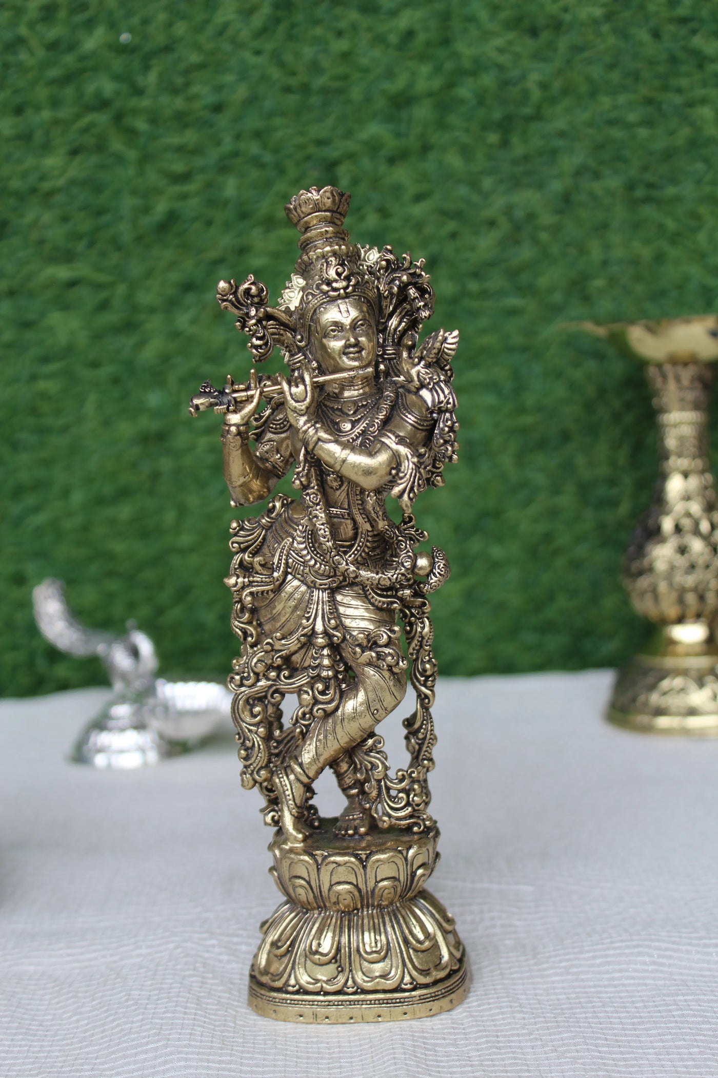Brass Krishna Idol With Flute – 7.50 Inch | Murli Manohar Standing Statue For Home Temple & Gifting