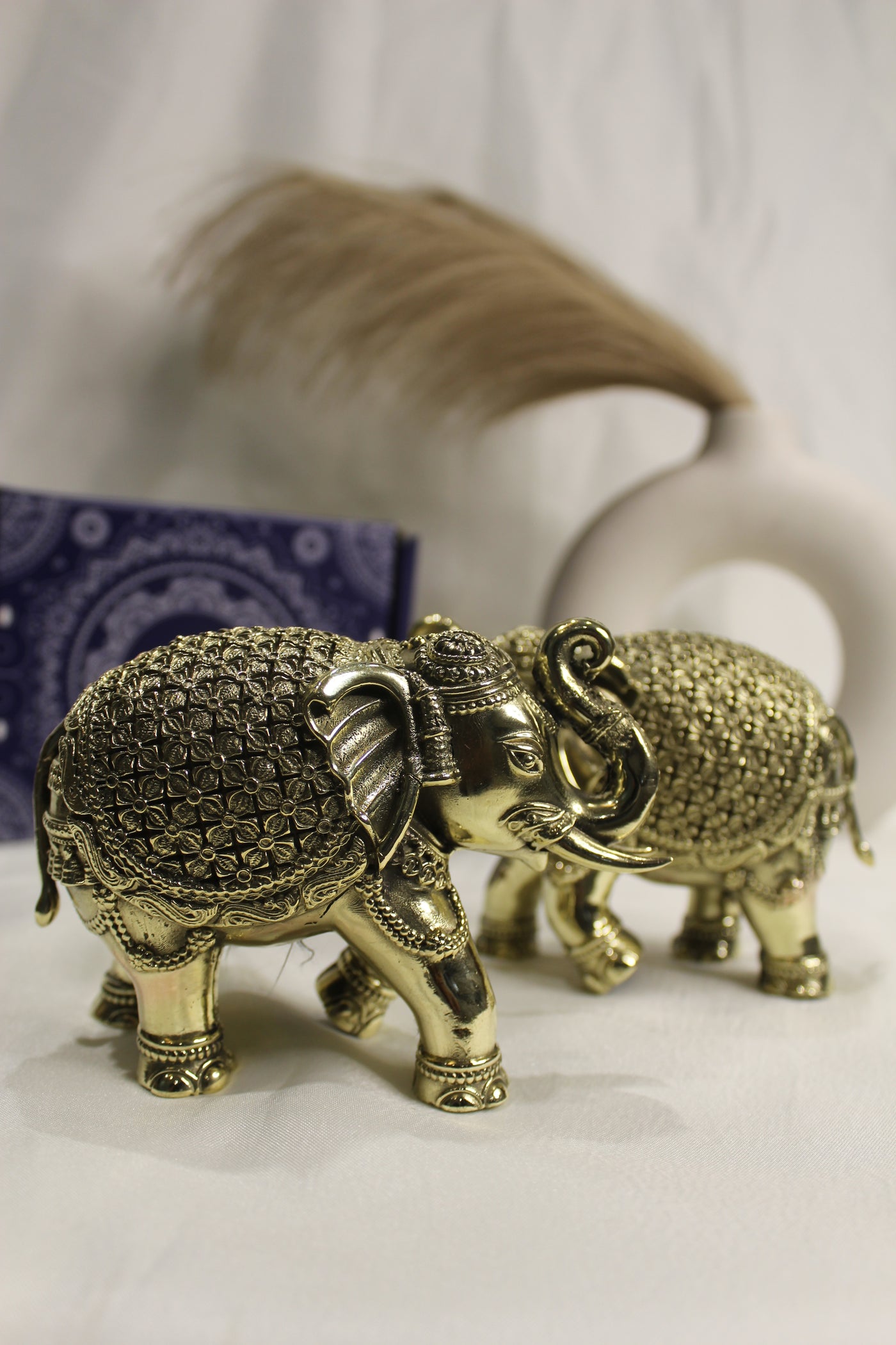 Handcrafted Brass Elephant | Vastu & Feng Shui Home Décor Showpiece - Pair (Set of 2 ) - 2.50"