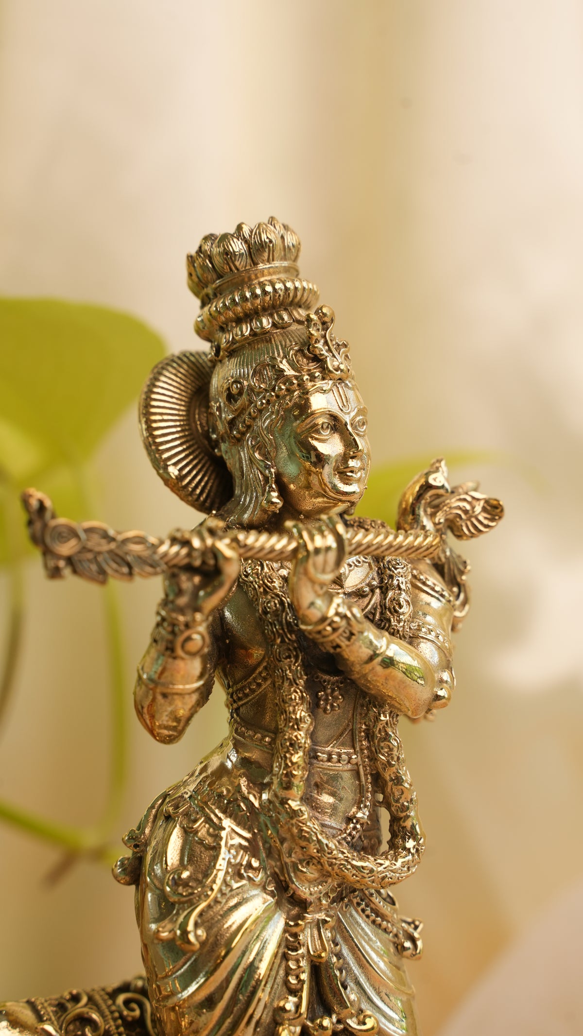 Krishna with Cow Brass Idol | Divine Sculpture of Harmony, Love & Pros – Rigvedaa™ index